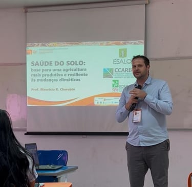 Finally, coordinating professor Maurício Roberto Cherubin delivered a lecture entitled "Soil Health: The Basis for More Productive and Climate Change-Resilient Agriculture."