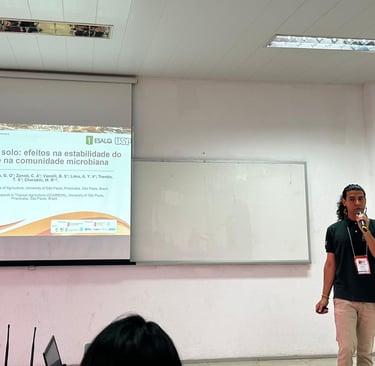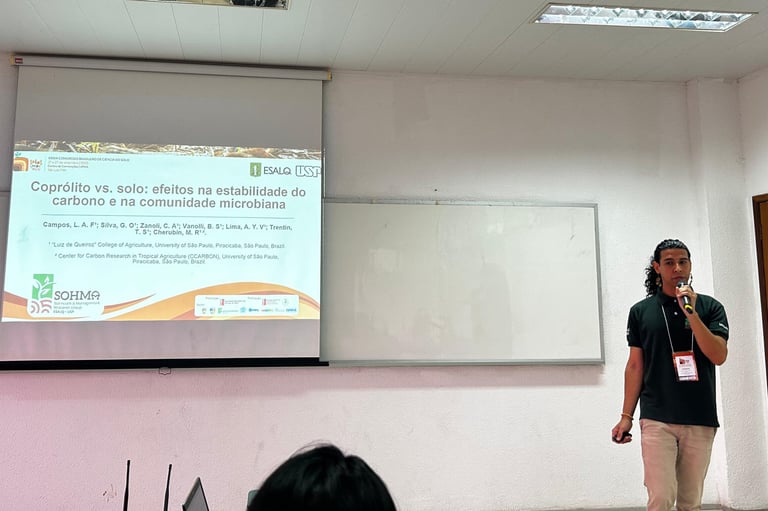 Furthermore, one of the undergraduate members, Luan Ferreira, with his work entitled "Coprolite vs. Soil: Effects on Carbon Stability and the Microbial Community," was chosen to present his results orally, a source of great pride for the group.