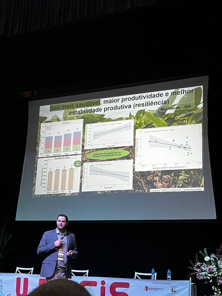 Prof. Dr. Maurício Roberto Cherubin gave a lecture entitled "The Challenges of Soil Science for the Coming Decades in Brazil", addressing important issues for the advancement of the field in the country. In addition, members of the group presented their work in poster format and in oral sessions, where one of the highlights of the event was the award for one of our works as the best oral presentation.
