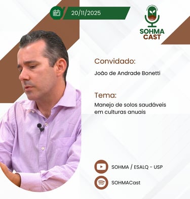 The third episode of the third season of SOHMACast features researcher João de Andrade Bonetti from UNESP Botucatu. In this episode, the discussion focuses on the challenges and opportunities involved in managing healthy soils in annual crops such as soybeans, corn, and cotton.