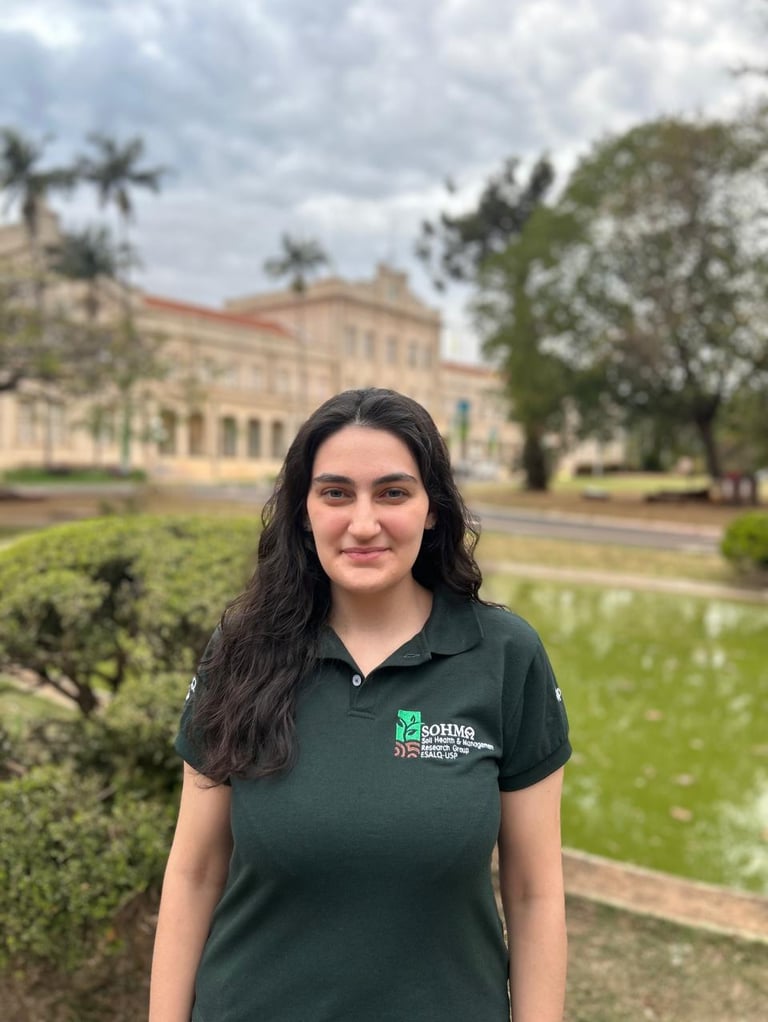 Engenheira Agrônoma pela Universidade Federal de Uberlândia - UFU (2015-2020). Atuou como estagiária no Laboratório de Cultura de Tecidos de Plantas Ornamentais da Escola Superior de Agricultura "Luiz de Queiroz" - ESALQ/USP (2019). Mestranda no Programa de Pós-Graduação em Solos e Nutrição de Plantas - ESALQ, com ênfase em Manejo e Qualidade do Solo. A sua pesquisa envolveu avaliar o impacto do uso de ativadores da microbiota do solo na Qualidade do Solo em dez áreas de diferentes regiões do Brasil (Sul, Centro-Oeste e Nordeste), comparando faixas experimentais com e sem a aplicação dos produtos.