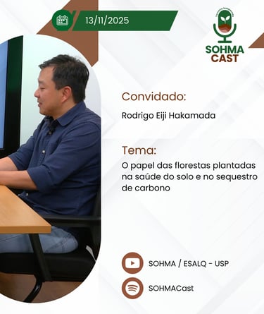 O segundo episódio da terceira temporada do SOHMACast foi ao ar no dia 13/11, com a visita do pesquisador Rodrigo Eiji Hakamada. A conversa abordou o papel das florestas plantadas na saúde do solo e no sequestro de carbono.